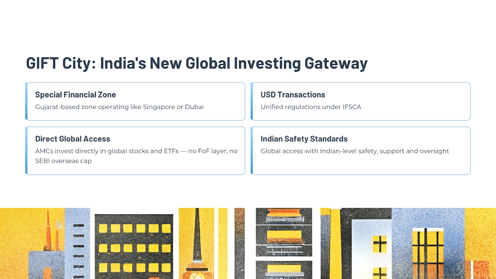 GIFT City also allows future thematic launches in areas like global technology, healthcare, energy transition or consumer trends.