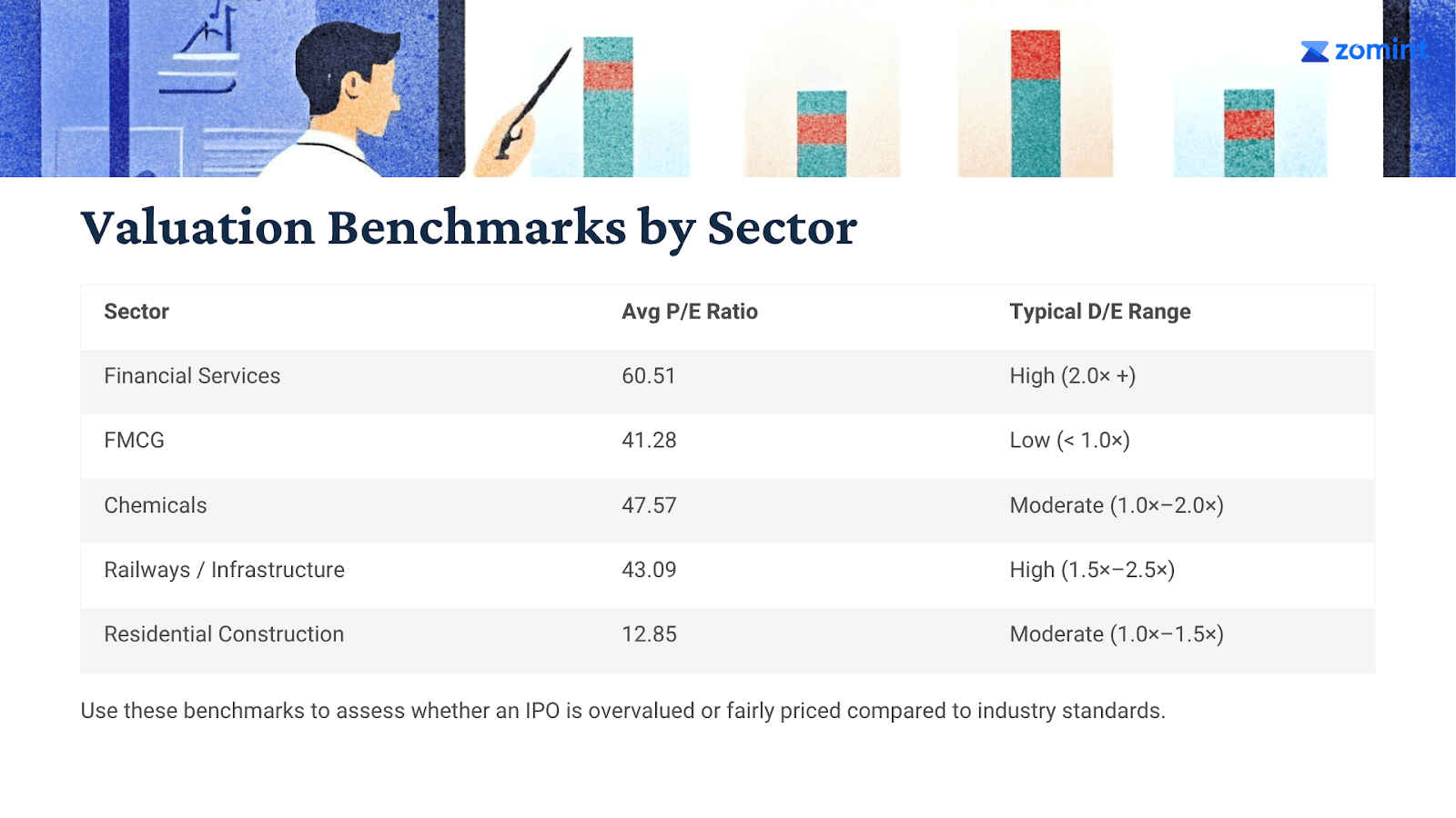 The table below shows the average P/E ratio and debt-to-equity (D/E) for major sectors, which can serve as a benchmark for your valuation check.