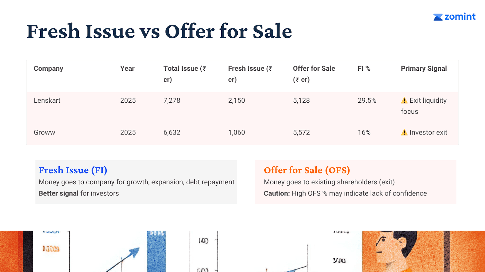 Offer for Sale (OFS): Existing investors are selling (watch for promoter exits).
